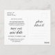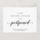 C'est le design rustique minimal moderne thématique, en police noire, Faire-part de mariage reporté (report / ajournement) carte postale. C'est le moyen parfait et élégant pour annoncer le report à vos amis et à votre famille.