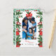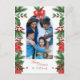 Joyeuse carte postale de Noël avec photo de famille, voeux de Noël et adresse de destinataire agrémentée de décorations florales de Noël. Customisez facilement avec votre photo de famille, couleurs et texte en cliquant sur "personnaliser ce modèle". Si vous avez de la difficulté à ajuster la photo cliquez sur modifier à l'aide de l'outil de conception et il vous emmènera à un concepteur en ligne où vous pouvez changer et déplacer les choses et même changer le type de police. Cette carte postale est appropriée comme un souvenir de famille pour la saison de Noël, une façon agréable d'envoyer des voeux chaleureux à votre famille et vos amis.
