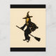 "Mona Lisa va à la fête d'Halloween"* Une carte d'Halloween amusante, avec Mona Lisa habillée en sorcière sur un balai prêt pour la fête, *