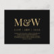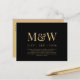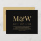 Carte postale moderne Black Gold Monogram Faire-part de mariage. La typographie moderne avec les initiales du couple en texte de couleur or sur le noir sur le devant, le dos comprend le texte noir sur l'arrière - plan de couleur or solide. Personnalisez avec le nom de la mariée et du marié, la date du mariage, le lieu du mariage et ajustez l'échantillon de texte et/ou les couleurs de l'invitation selon votre souhait. Visitez notre magasin Austen & Grace pour voir la suite mariage complète, les produits correspondants et plus encore, et contactez-nous si vous avez besoin d'aide contact@austenandgrace.com