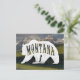 Cette carte postale présente la silhouette d'un ours grizzli encadrant le mot MONTANA. L'oeuvre comprend une texture de toile qui donne un aspect imprimé à la main. La photo arrière - plan donne sur les montagnes entourant le lac Bowman dans le parc national des Glaciers.