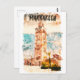 Carte postale élégante rétro aux aquarelles montrant le paysage et l'architecture à couper le souffle et des monuments comme la mosquée de la koutoubia de Marrakech ou Marrakech au Maroc. Fonctionne comme un souvenir de voyage et aussi une idée cadeau pour mémoriser vos vacances dans le pays du Maghreb.
