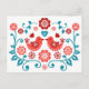 Carte Postale motif d'art populaire scandinave rouge et bleu