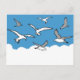 Carte postale pour un ornithologue. Mouettes volant contre un arrière - plan bleu. Cartes postales ornithologues.