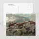 Une carte postale d'art avec la peinture de Winslow Homer (1836-1910), intitulée Mount Washington (1869). Un paysage des montagnes du New Hampshire, avec plusieurs chevaux de selle sur un affleurement rocheux.
