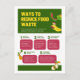 Affiche éducative sur une carte postale. Comment réduire les déchets alimentaires avec quelques conseils sur la façon de réduire les déchets alimentaires et aider à économiser nos ressources.