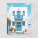 Une carte postale magnifiquement détaillée représentant l'essence de Mykonos, en Grèce, avec une pittoresque rue pavée bordée de bâtiments blancs traditionnels et de portes et balcons bleus vibrants. un café extérieur cosy avec chaises et tables en bois invitations pour se détendre sous le soleil méditerranéen chaud, tandis que les bougainvilliers fleuris ajoutent des éclats de teintes rose et orange. au-dessus, des mouettes brillantes ciel bleu parsemé de nuages moelleux, complétant le paysage idyllique de l'île grecque. cette charmante oeuvre d'art exprime parfaitement la beauté et la tranquillité de Mykonos.