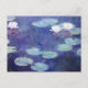 Carte postale d'art avec le tableau Water Lilies, Pink (1897) de Claude Monet, artiste impressionniste français (184-1926). Cette carte postale représente un étang tranquille avec de l'eau bleue profonde et des nénuphars délicats.