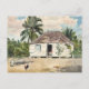 Carte postale avec peinture à l'aquarelle de l'artiste américain Winslow Homer (1836-1910) Native Huts, Nassau (1885). Une scène tropicale avec un coq au premier plan. Cabanes avec toits de paille et palmiers en arrière - plan.
