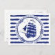 Emblème bleu nautical with sailing ship on striped background © and® Bigstock® - All Rights Reserved.