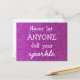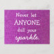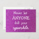 Ne laissez jamais personne ternir votre éclat sur un arrière - plan de parties scintillant violet - une carte postale stimulante et motivante à envoyer à un ami ou à un proche.