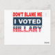 Carte Postale Ne me blâme pas J'ai voté Hillary