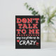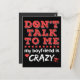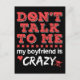 Ne me parlez pas mon copain est un dessin fou est un cadeau amusant pour les femmes ou les ados avec un petit ami jaloux. Avertissez tout le monde de ne pas flirter parce que vous avez un copain fou.