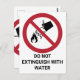 Carte Postale Ne Pas Extincer Avec L'Eau, Panneau D'Interdiction