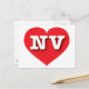 Cette carte postale est dotée d'un coeur rouge vif contenant les lettres coques en haut et en blanc NV, l'abréviation officielle du Nevada, l'état argenté. Le revers de la carte postale est vide, en attendant votre texte personnalisé ou vos sentiments manuscrits.