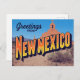 This striking, retro-style design features the iconic "Greetings from NEW MEXICO" typography set against a traditional desert landscape. The background prominently features a historic adobe mission or church, reflecting the state's deep cultural and architectural heritage, typical of the Santa Fe and Pueblo regions. Perfect for fans of vintage travel posters, retro artwork, Southwest history, and the unique beauty of the Land of Enchantment. This makes an ideal souvenir or gift for travelers and locals.