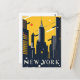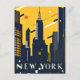 Illustration vibrante d'un skyline de ville célèbre, avec ses gratte-ciel emblématiques et ses monuments. L'image reflète l'énergie dynamique et la grandeur architecturale de la ville, avec ses immeubles imposants et ses rues animées. L'ensemble est audacieux et graphique, l'accent étant mis sur les toits emblématiques de la ville.