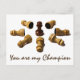 Un pion d'échecs marron entouré de sept pions blancs-jaunâtres pondus. Ninja victoire sur les ennemis. Image transparente isolée. Texte Vous êtes mon champion. Vous pouvez modifier ou supprimer le texte.