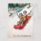 Carte Postale Noël ancien victorien en traîneau en bois pour pou