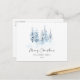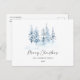 Carte postale Paysage Rustique de la forêt d'hiver Bleue de Noël. La carte postale de vacances avec un beau paysage rustique d'hiver aux couleurs bleu et blanc. Design élégant et élégant. Sans photo.