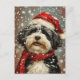 "Prenez le charme festif avec notre carte de Noël avec un adorable chien Havanais portant un chapeau de Père Noël. Ce design chaleureux rayonne de joie de vacances, ce qui en fait la meilleure façon d'envoyer des voeux chaleureux à vos proches cette saison."