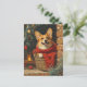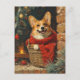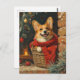 "Faites passer la joie et la joie festive avec notre carte de Noël délicieuse avec un adorable Corgi. Le design charmant capte l'essence de la saison, ce qui en fait la meilleure façon de souhaiter à vos proches un joyeux et des pattes de merveilleuse vacances!"