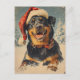 Nous vous souhaitons une saison festive remplie de joie et de chaleur ! Cette carte de Noël présente un joli Rottweiler, portant un chapeau de Père Noël avec un scintillement dans l'oeil. L'esprit canin ludique apporte une touche de gaieté de vacances, promettant une saison de plaisir et de bonheur éternel. Partagez dans la joie que cet ami festif répand la magie de Noël, rendant vos célébrations spéciales.