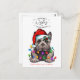Une carte de Noël amusante avec un mignon chien d'aquarelle dans les lumières de Noël et texte de typographie simple qui dit "Voeux de Noël et Baisers de chien". Changez facilement le texte en Dog Kisses, Puppy Kisses, etc. La partie arrière dispose d'un motif de pattes en forme de coeur. Parfait pour tous ceux qui aiment leur bébé à fourrure.