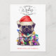 Une carte de Noël amusante avec un mignon chien d'aquarelle dans les lumières de Noël et texte de typographie simple qui dit "Voeux de Noël et Baisers de chien". Changez facilement le texte en Dog Kisses, Puppy Kisses, etc. La partie arrière dispose d'un motif de pattes en forme de coeur. Parfait pour tous ceux qui aiment leur bébé à fourrure.
