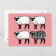 Même un mouton noir, symbole de non-conformité, a l'air ordinaire comparé à un mouton noir damassé ! Soyez différent de façon élégante avec cette illustration représentant des moutons blancs ordinaires et un mouton noir damassé sur un arrière - plan à motif diamant rose.