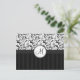 Un motif floral numérique transparent de noir et blanc sur le dessus, et vieilli vintage style satiné rayures image sur le fond, avec un recouvrement de ruban et un sceau de texte monogramme personnalisable.