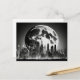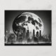 Carte postale paysage noir et blanc d'une grande pleine lune au-dessus d'un paysage imaginaire.