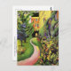 Carte postale avec le tableau du paysage, Our Garden with Flower Beds in Bloom (1912), de l'artiste expressionniste allemand August Macke (1887-1914) qui a perdu la vie dans la Première Guerre mondiale. Un jardin fleuri et un chemin devant une maison jaune.