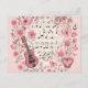 Carte postale avec illustration dans un style romantique vintage. Notes musicales, fleurs, papillons et guitare. Une belle ambiance sentimentale.
