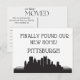 Informez vos amis et votre famille de votre grand déménagement avec cette carte postale élégante "We Have Moved to Pittsburgh" ! Doté d'éléments emblématiques de Pittsburgh, comme sa ligne d'horizon époustouflante et ses célèbres ponts, ce faire-part est parfait pour partager votre nouvelle adresse dans Steel City. Que vous soyez en déplacement pour le travail, la famille ou un nouveau départ, cette carte postale est un excellent moyen de rester en contact avec vos proches. Personnalisez-le avec vos détails et envoyez un accueil chaleureux de votre nouvelle maison à Pittsburgh!