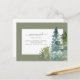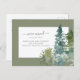Nous avons déménagé Nouveau Home Script Pine Tree Green Postcard Ce design présente des pins aquarelles et des calligraphies de script personnalisées sur un simple arrière - plan.