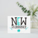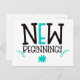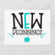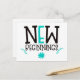 Donnez un coup de pouce à quelqu'un et envoyez-lui une carte postale avec un message d'élévation. Ceci a les mots New Beginnings dans une grande typographie à la mode en noir avec des touches de turquoise, et feuilles et motifs floraux. L'arrière - plan blanc peut être changé en une couleur différente si vous le souhaitez.