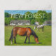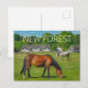 Carte postale avec photo des poneys de la Nouvelle Forêt et des chalets en chaume en style peinture de New Forest Pics