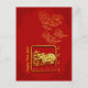 Découpure de papier doré représentant un bœuf dans un carré + Nuages propices chinois dorés (graphisme linéaire) + Cadres chinois rouge foncé dans les quatre coins. Design sur carte postale avec fond rouge et textes : 2021, L'Année du Bœuf et Bonne Année à personnaliser si vous le souhaitez (au recto) et les nuages propices en haut à gauche (au verso). Carte de vœux assortie, invitation, fournitures artisanales, fournitures de fête et plus encore... Parfait pour le Nouvel An chinois du Bœuf 2021 ou pour un anniversaire (personnes nées l'année du Bœuf).