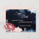Cette carte postale 'Nuit étoilée florale' pour annoncer votre mariage inspire soit un thème de soirée d'été, soit un thème d'hiver enneigé, ce qui en fait un design polyvalent selon les saisons. Le bleu marine, presque noir, aquarelle avec un ciel rempli d'étoiles célestes ou de flocons de neige, combiné à l'éclat de fleurs roses minimales et de calligraphie, est sûr de parler de la magie de votre célébration de mariage, quelle que soit la période de l'année.