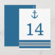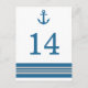 Elégante et classique Ancre nautique Numéro de table Carte postale avec une simple ancre de bateau et un ensemble de rayures en bleu marine foncé et gris. Cette carte de table mariage à thème de plage nautique peut être facilement customisée avec vos détails de mariage. Pour plus d'options de personnalisation, cliquez sur le bouton Customiser.
