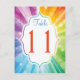 Cette carte de poste couleur arc-en-ciel amusant et coloré rayures de soleil de couleur arc-en-ciel a un effet de bocca mettre en surbrillance cercles et éclat de lumières étoiles sur elle qui correspond à la faire-part de mariage ci-dessous. **Vous devez changer le numéro 11 à chacun des numéros de table dont vous avez besoin, l'ajouter à votre panier, puis revenir et répéter le processus jusqu'à ce que vous ayez toutes les cartes numérotées individuellement dont vous avez besoin dans votre panier. Placez-le sur un petit chevalet ou dans vos pièces centrales. Si vous avez besoin d'aide, envoyez un courriel à niteowlstudio@gmail.com.