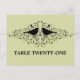 Sweet and simple Inséparable Swirls Numéro de tableau Carte postale avec silhouettes d'une paire d'oiseaux lunaires et cascades d'élégants tourbillons fleurissent sur un arrière - plan vert menthe. Cette carte de numéro de table moderne est facile à customiser avec le ou les numéros de table appropriés. Cliquez sur "Customiser" pour trouver d'autres options de personnalisation.
