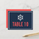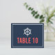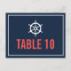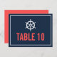Marine et corail Casque nautique Numéro de tableau Carte postale carte de remerciements bleu marine foncé et corail avec une illustration de barre blanche. Il conviendra parfaitement aux mariages nautiques ou aux mariages à thème marin et océanique.