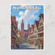 Nuremberg, située dans l'État allemand de Bavière, est une ville imprégnée d'histoire, de culture et de résilience. Autrefois un centre clé du Saint-Empire romain, il s'épanouissait au Moyen-Âge en tant que plaque tournante du commerce, de l'artisanat et des arts. Sa vieille ville médiévale, entourée d'imposants murs en pierre, abrite des sites remarquables comme le Kaiserburg (Château impérial) et l'église de Saint-Sébald. Les maisons à colombages et les rues pavées de la ville lui confèrent un charme de conte de fées, surtout pendant les mois d'hiver où elle accueille le renommé Christkinlesmarkt.