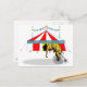 Éléphant de cirque montant un vélo avec tente de cirque rouge et blanche