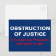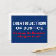 Texte : Obstruction à la justice. Ce n'est jamais le président qui va en prison. Lettres en bloc blanc et rouge sur un arrière - plan bleu. La résistance continue chaque jour, à chaque action et à chaque manifestation.