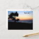 Cette jolie carte postale présente une photo d'un palmier au bord de l'océan au coucher du soleil. Le texte dans le coin supérieur droit est personnalisable pour convenir à n'importe quel endroit tropical que vous voulez!
