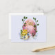 Carte Postale Oeuf de Pâques, poussin de bébé et fleurs de print