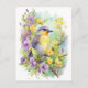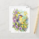 Carte Postale Oiseau à l'aquarelle avec fleurs violettes et jaun